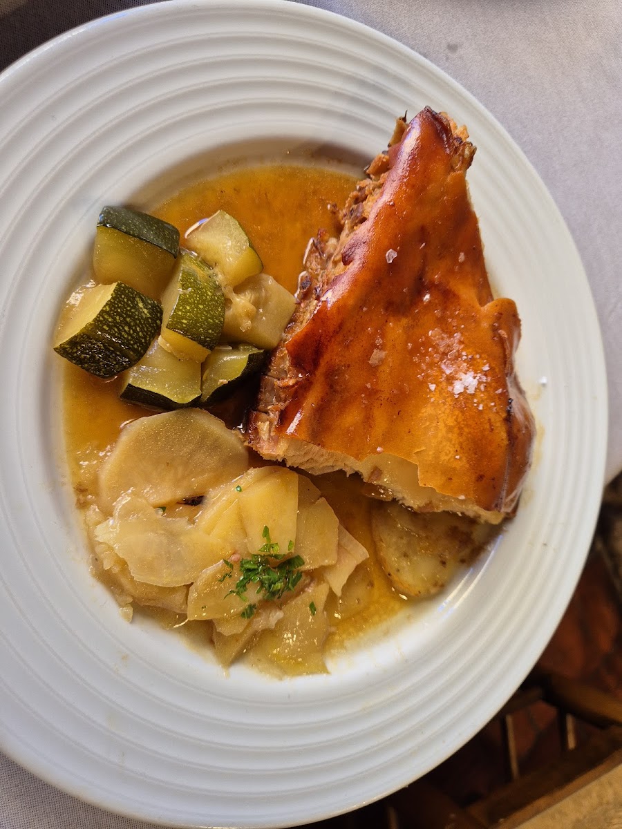 Another highlight is the delicious torta de Aranda, served warm, which complements your meal beautifully. The delightful crunch of this bread pairs exquisitely with the robust flavors of the entrees, making it a dish not to be missed.